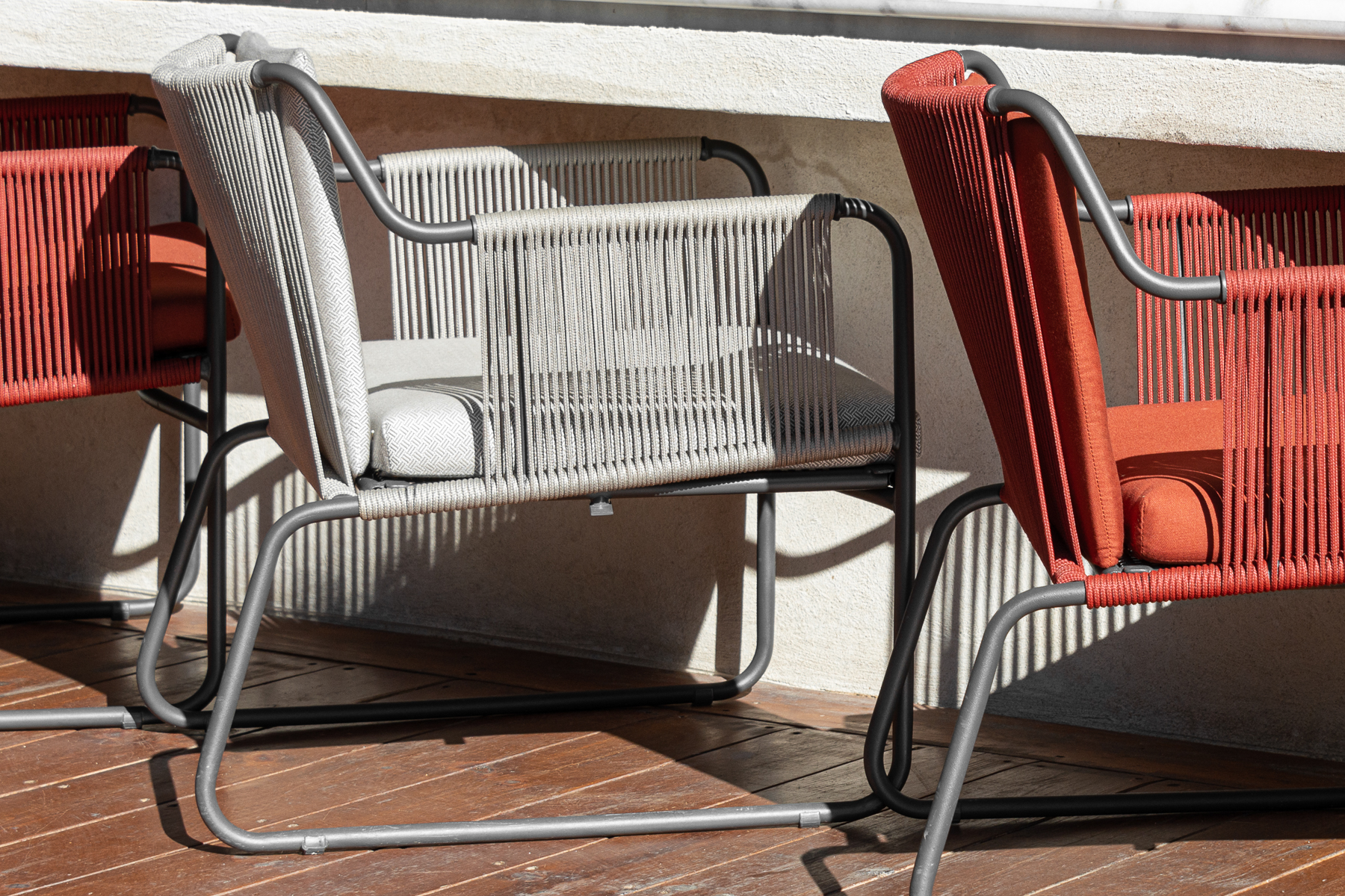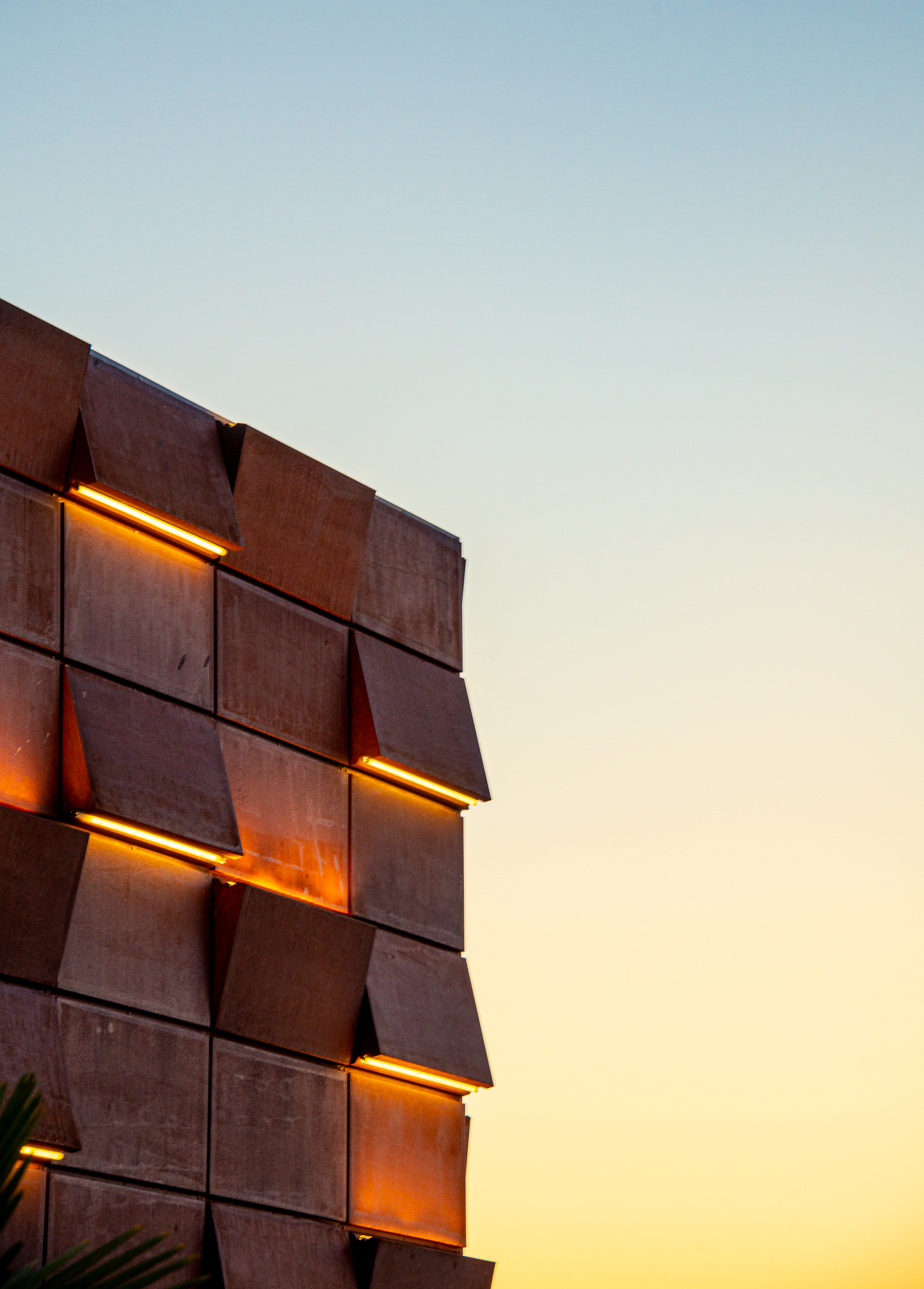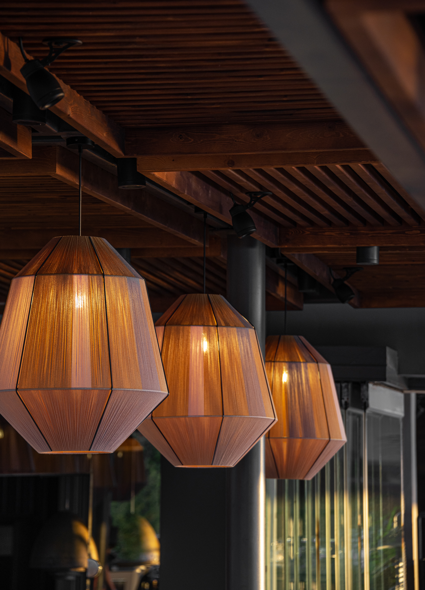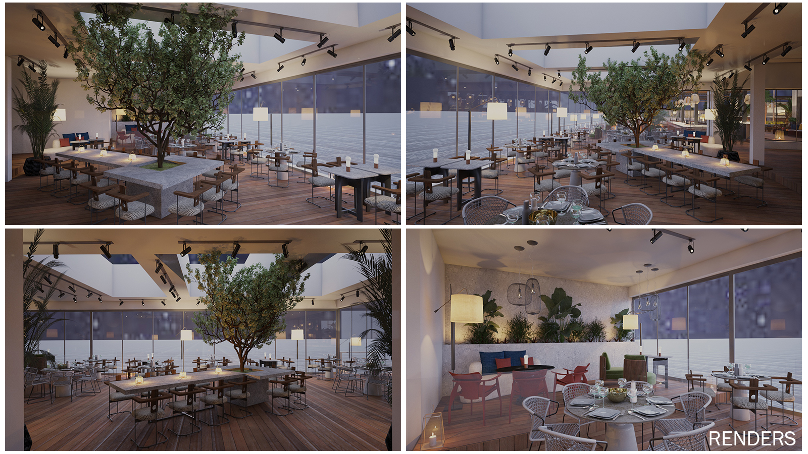 Each visitor goes through a journey upon arriving the site. First point of arrival is the entrance, where large Corten slabs that look like oxidised iron, along with blooming plants, welcome you and lead you down a path to the various sensations that nature can offer. Organic materials are being used in the whole promenade from the entrance, up until the sea front. Timber floors and pergolas, candle lit granite surfaces and tables, outdoor gas fire pits, a rich pal coloured palette of textiles, and a vast selection of plants and trees, make the visitor experience a connection to the earth and in the same time feel the unique and powerful identity of the establishment.