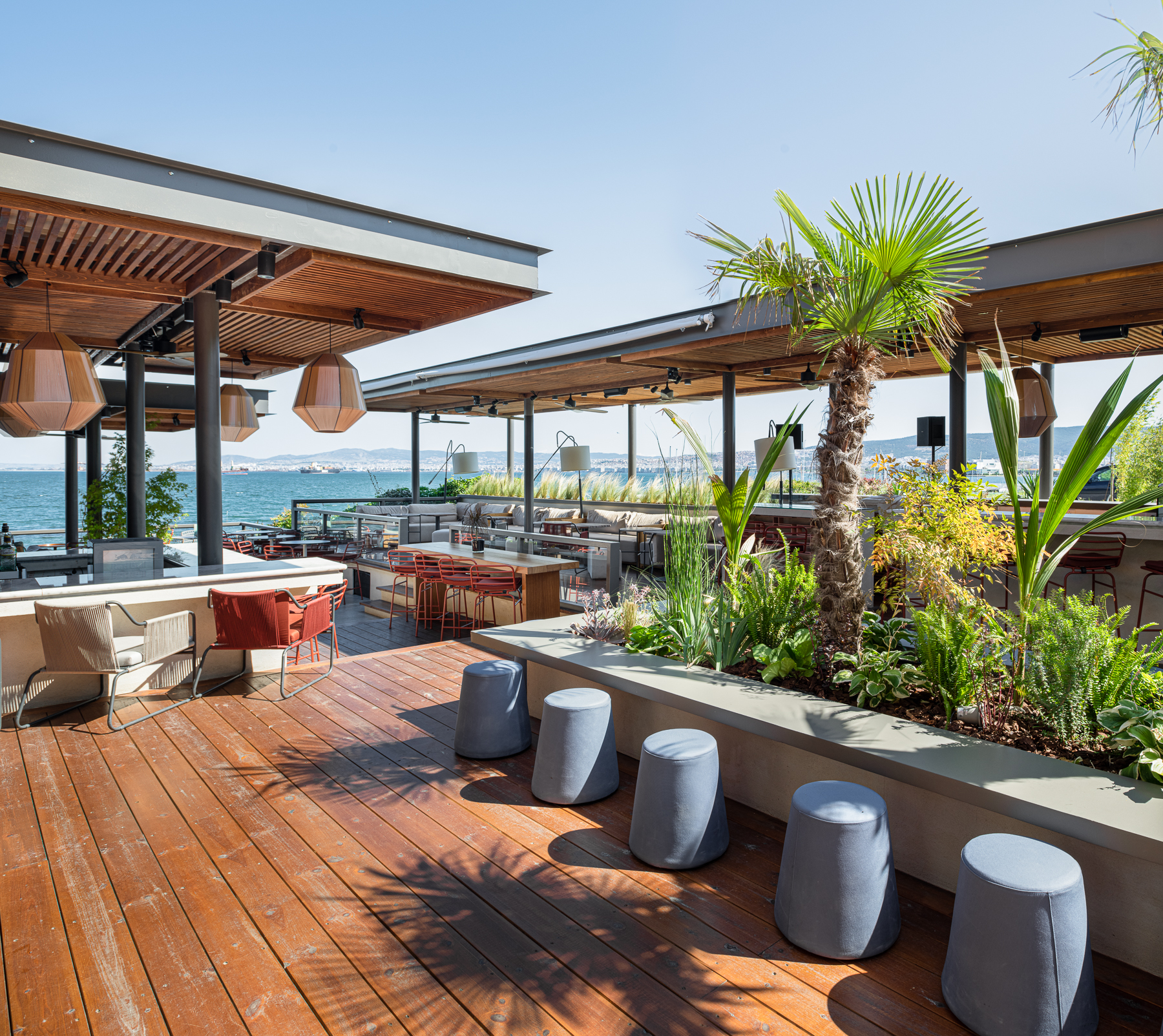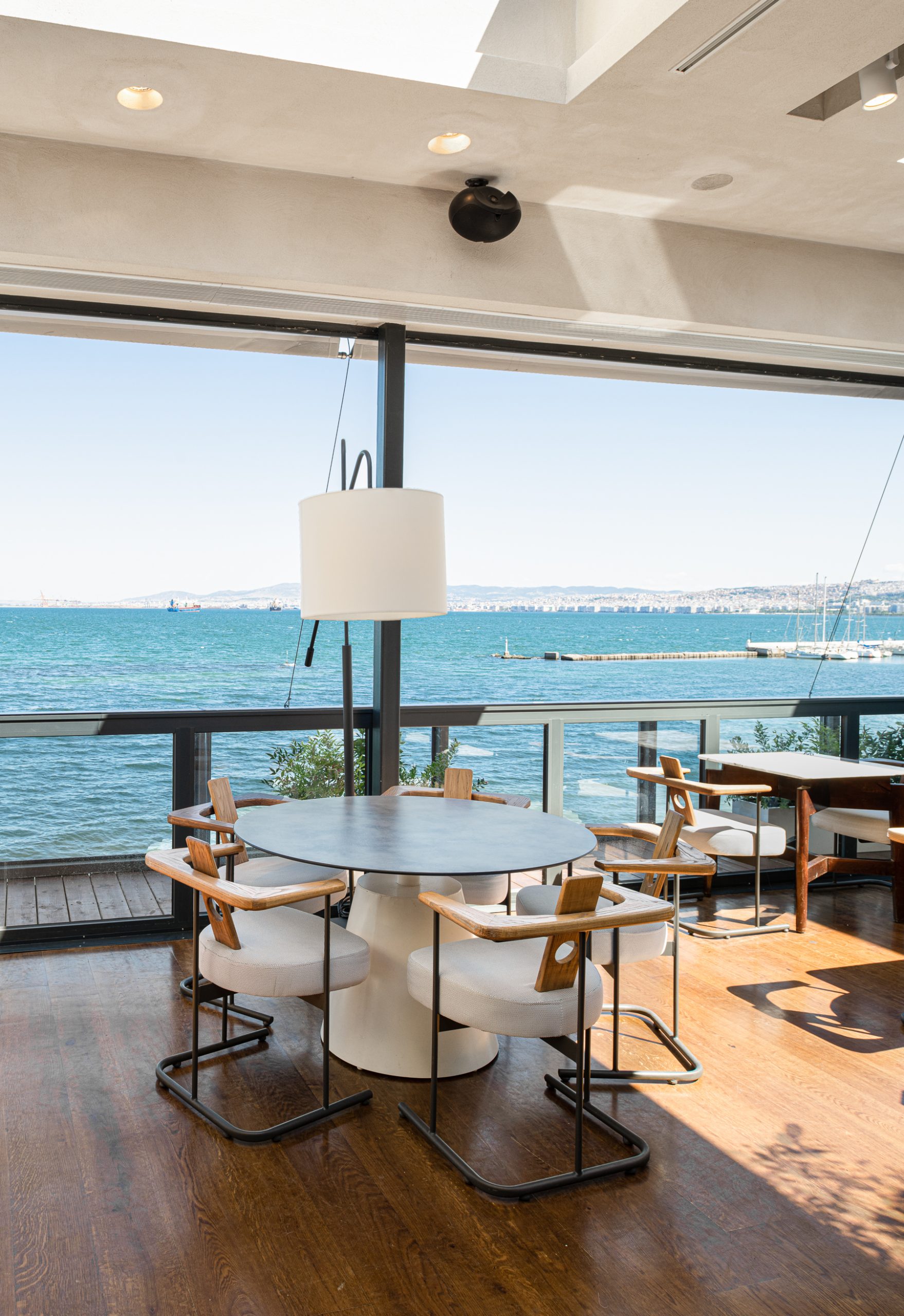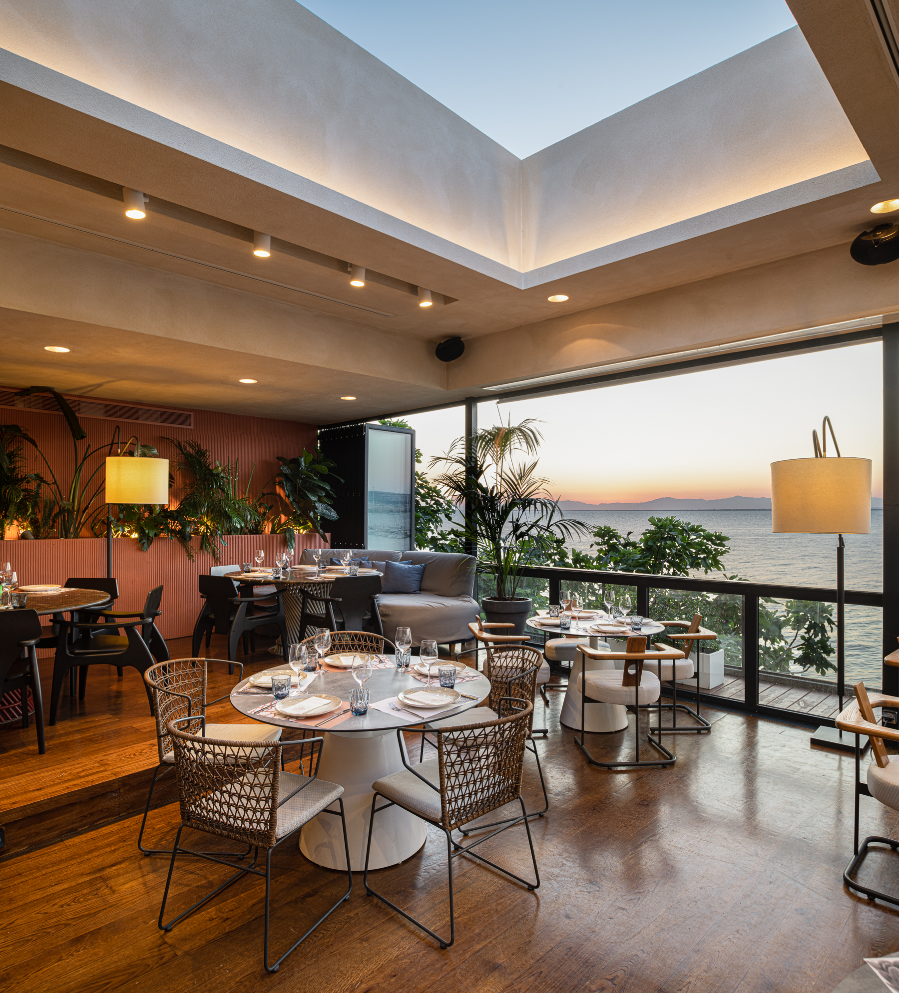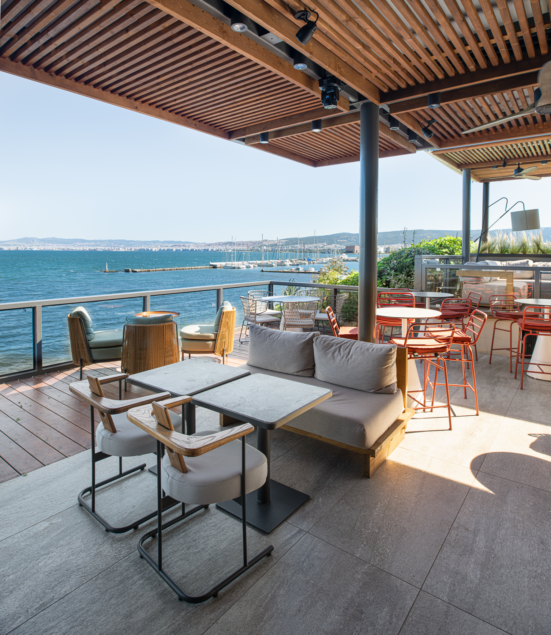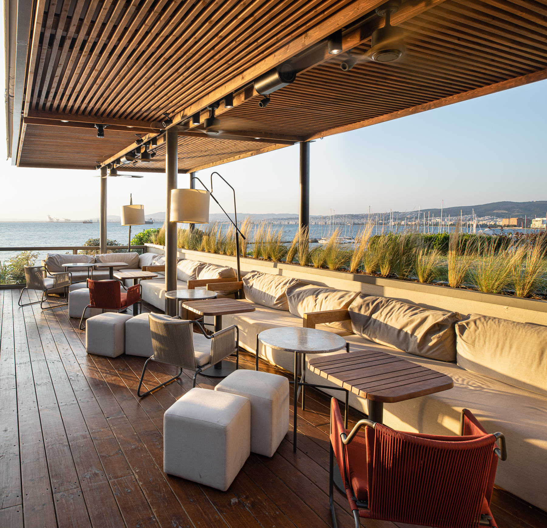 Les Zazous is a luxurious bar and restaurant, situated in the magnificent sea front of Karabournaki, Kalamaria in the city of Thessaloniki. It takes advantage of the surrounding natural beauty and blends in perfectly with the environment. Big openings offer breath taking views towards the sea and allow for the whole site to be filled with natural light.